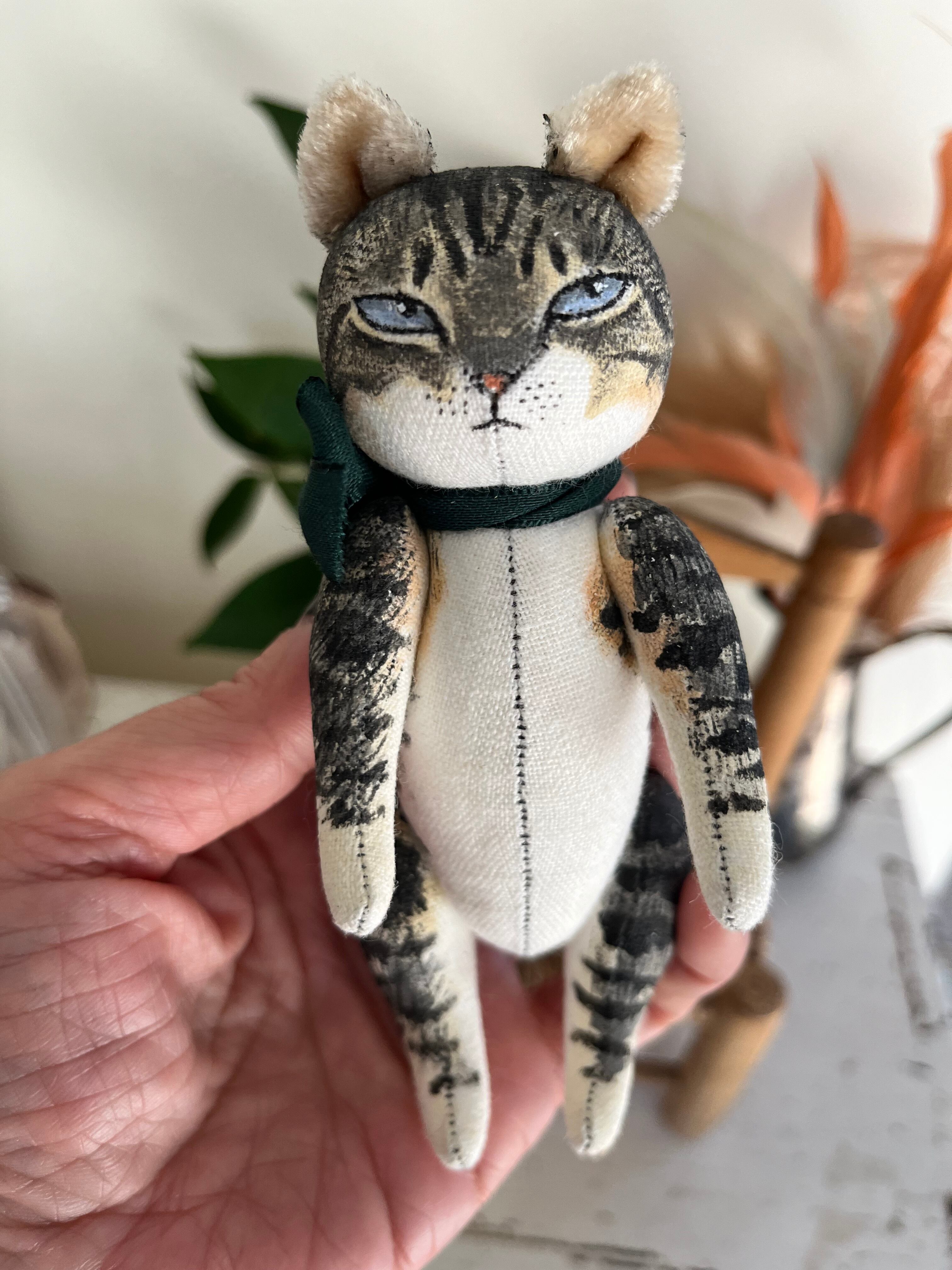 キャンパス生地にアクリルペイントが施されています。手脚尻尾が動かせるので、お好きなポーズを楽しむことができます。(ワイヤーが内蔵されているため、無理なポーズはご注意ください。)